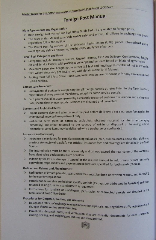 Postal department exam study material
